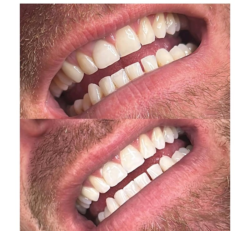 Vi anvender en skånsom og EU-godkendt gel med 0,1 % brintoverilte, der effektivt lysner dine tænder uden at skade emaljen.